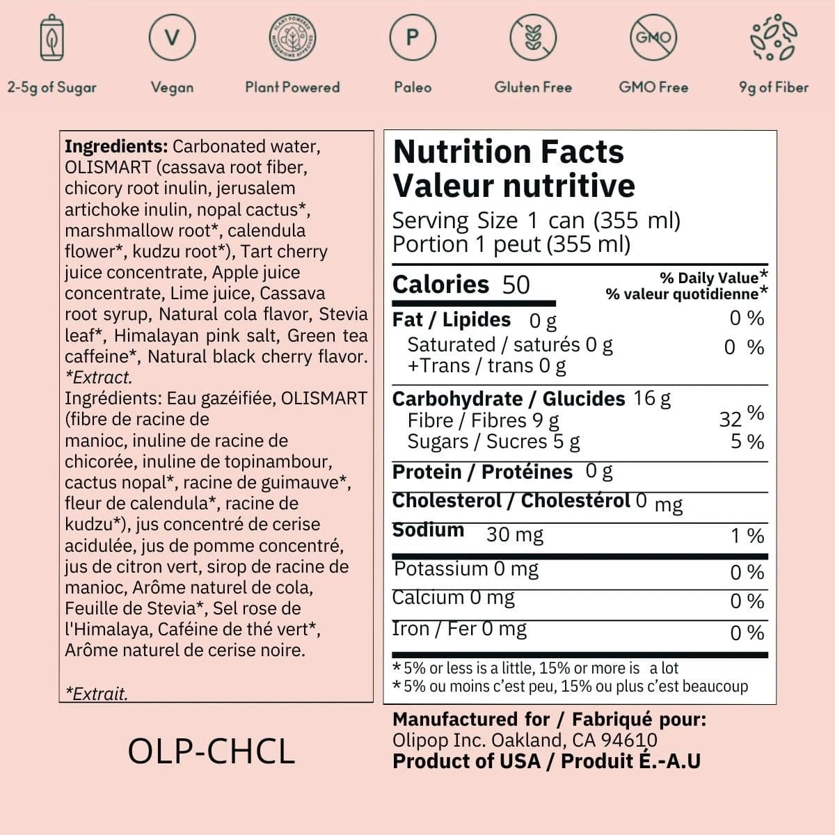 OLIPOP’s prebiotic soda isn't just any cherry cola; it's a cherry cola made with real tart cherry juice, secret spices to give it that classic cola kick, and of course, prebiotics! With a whopping 9g of gut-healthy prebiotics and only 5g of sugar, this low-sugar healthy cola is here to add a cherry on top to your day! It’s the better-for-you cola alternative that’ll have you feeling cherr-ific sip after sip!