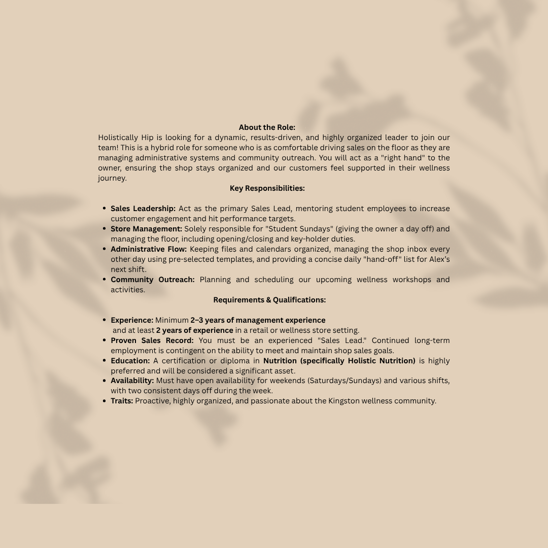 How to Apply: If you meet these requirements, please email us! info@holisticallyhip.ca