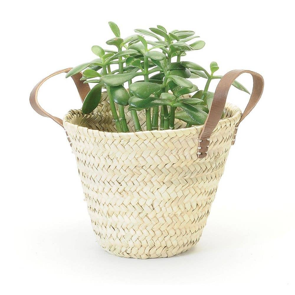 STRAW PLANTER LEATHER HANDLES